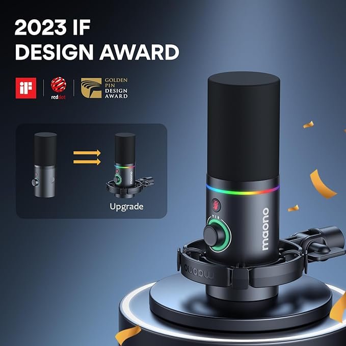 MAONO XLR/USB Podcast Microphone, PC Dynamic Microphone for Recording, Streaming, Gaming & Voice-Over, Metal Mic with Software, Tap-to-Mute, Headphone Jack, Gain Knob &