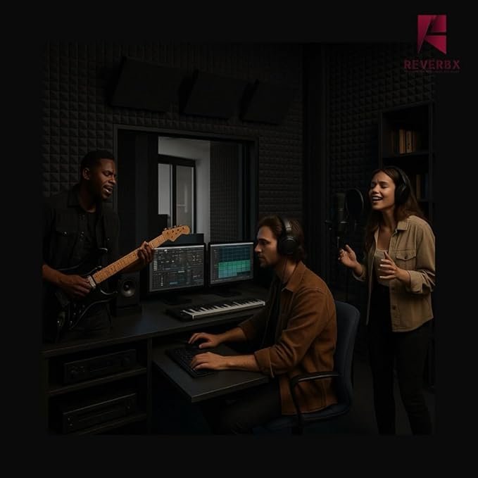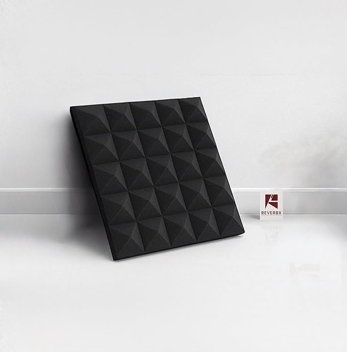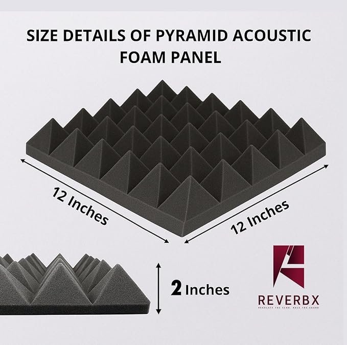 ReverbX® Pyramid Acoustic Foam Panels (Pack of 126) – Compressed Packing – 12” X 12” X 2”, 38 Density | Acoustical Soundproofing for Studio, Theater etc | Echo & Reverb Absorption (Charcoal Black)